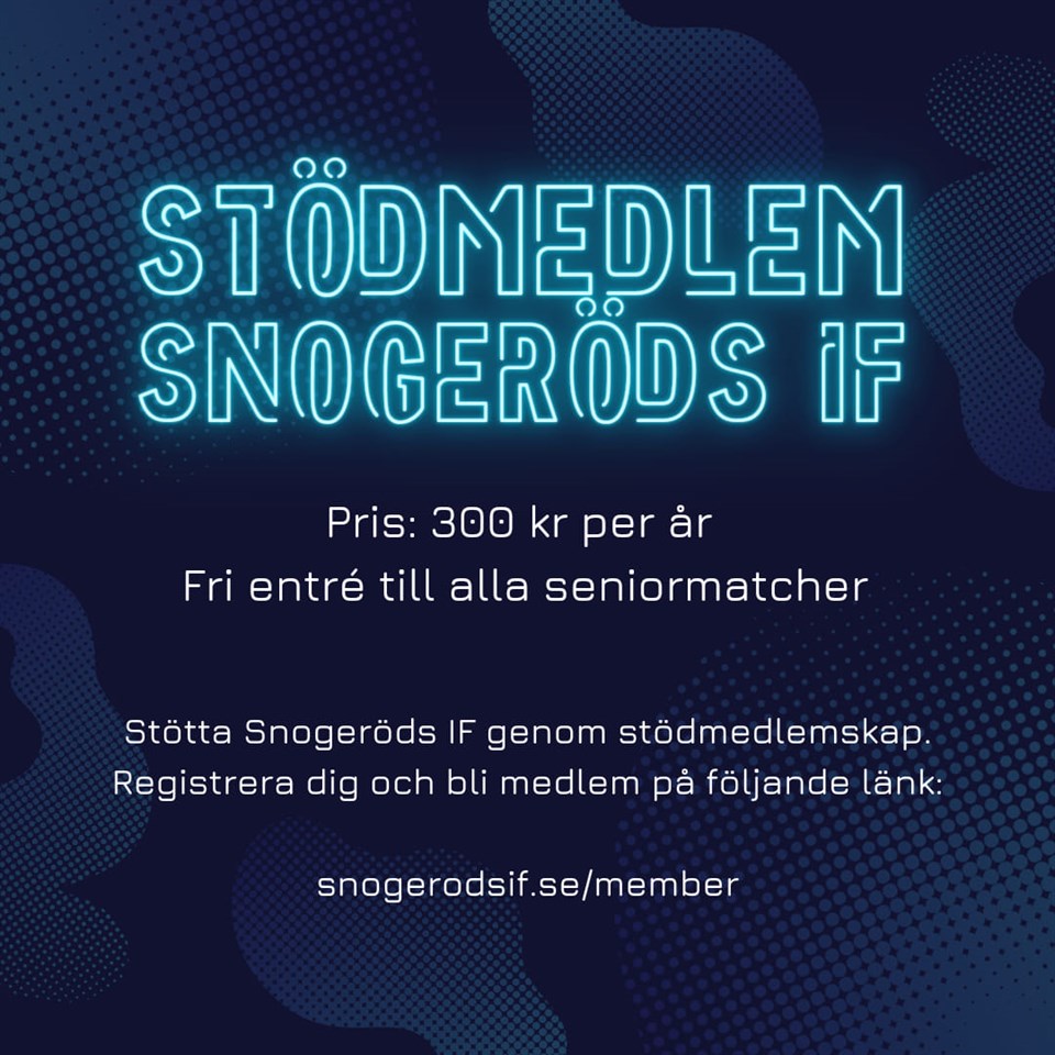 Stötta Snogeröds IF genom stödmedlemskap 💙 Registrera dig och bli medlem här eller genom att klicka på "Bli medlem" i menyn. Stort tack på förhand!